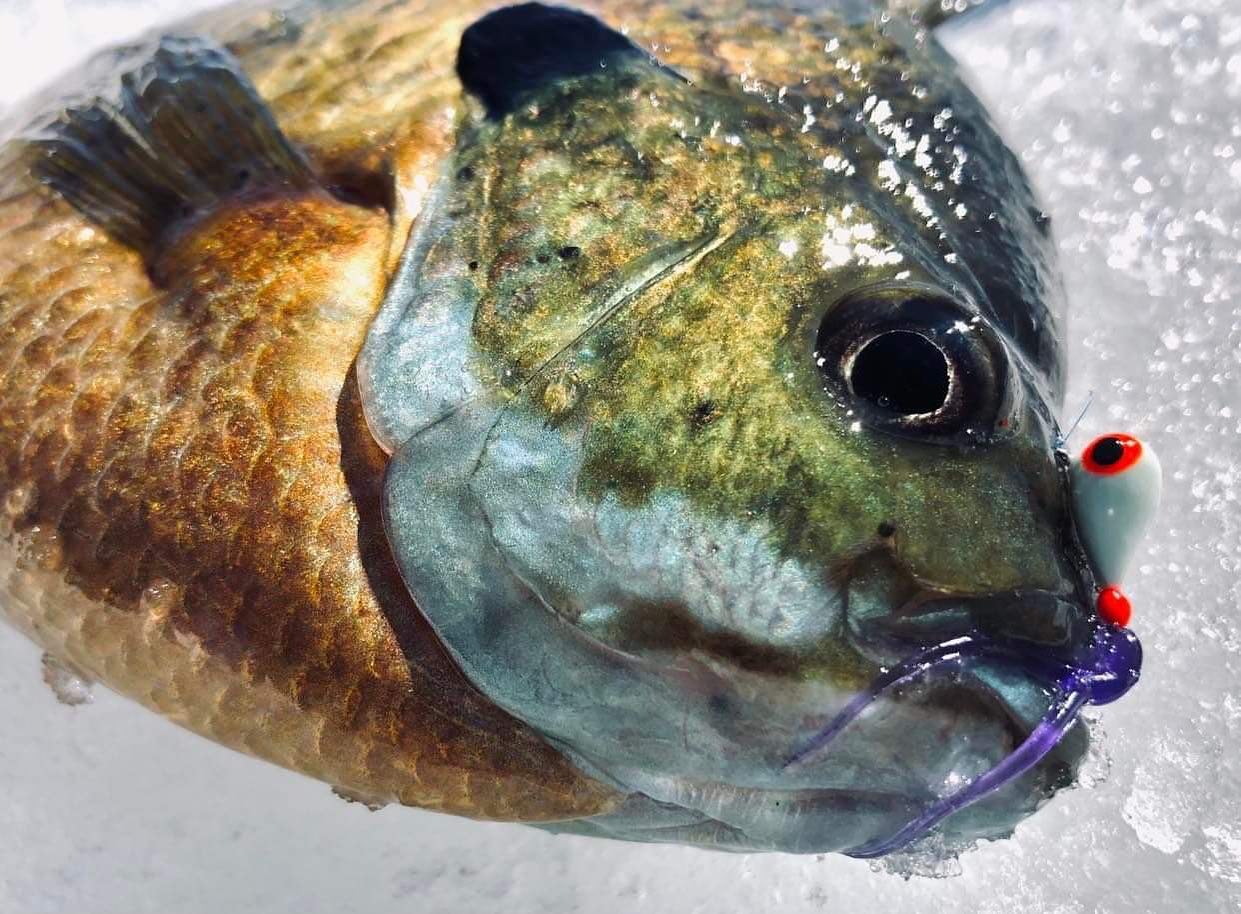 Fishing weed beds can be challenging but highly rewarding. We utilize Aqua Vu cameras to locate panfish in open pockets and find their “fish travel highways” Once we locate these areas holding panfish we drop down our plastics that are mimicking the forage within these weeds. The Corix, crawzi, and minix are all great options !
